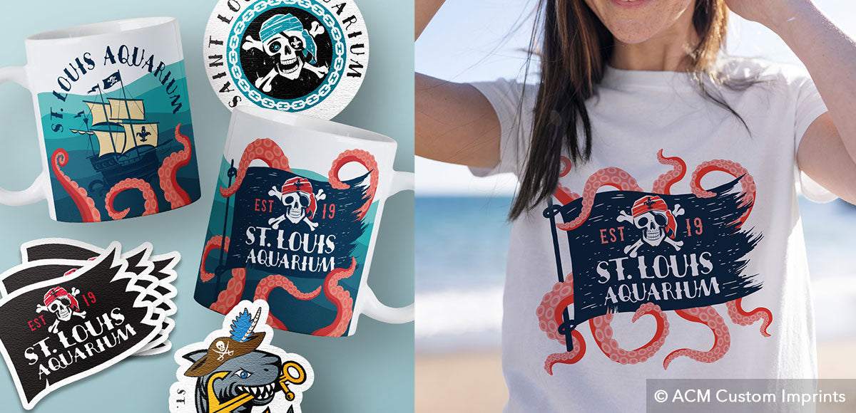 Tasked with creating merchandise for a special themed event at the aquarium, we designed a line of products including mugs, stickers, shirts and magnets with a custom pirate theme.